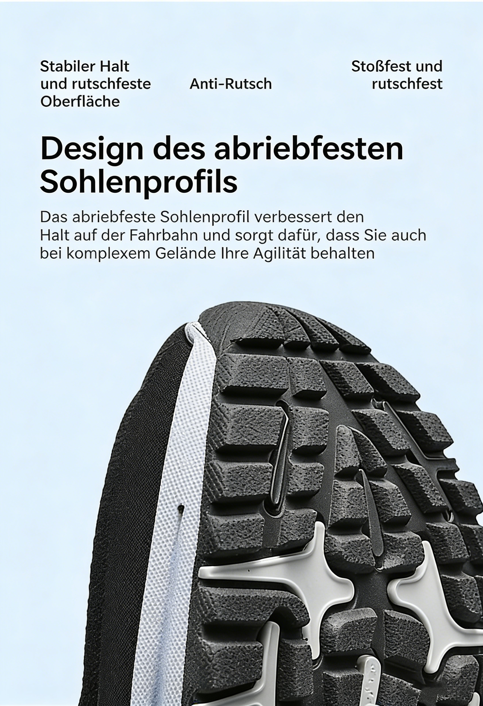 Weiche Dämpfung : Eine der herausragenden Eigenschaften dieser Schuhe ist ihre exzellente Dämpfung, insbesondere im Bereich des Fußgewölbes. Dank einer federnden Zwischensohle und einer flexiblen, atmungsaktiven Fußgewölbestütze absorbieren sie Stöße, verteilen den Druck gleichmäßig und dämpfen Ihre Fersen beim Gehen oder Laufen – für ein angenehmes Laufgefühl. Zusätzlich sorgt eine feste Außensohle für Stabilität und sicheren Halt.